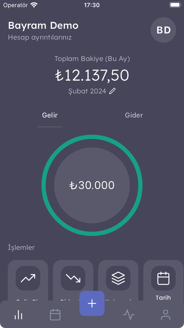 📊 Grafiksel Kontrol: Gelir ve giderlerinizi renkli grafiklerle anında görüntüleyin. Harcamalarınızı kategorilere ayırarak nereye ne kadar harcadığınızı anında analiz edin.
