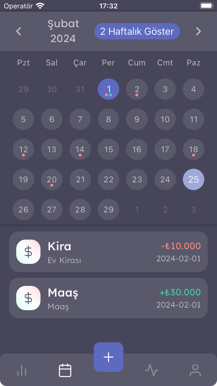 📅 Gün Gün İnceleme: Her gününüzü tek bir bakışta gözden geçirin. Hangi gün ne kadar harcadığınızı ve nereden gelir elde ettiğinizi tarih üzerinde detaylı olarak gözlemleyin.